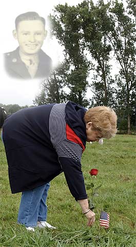 | Finally, after 60 years. A rose and an American flag on behalf of the Taylor family. A touching moment.... This is the spot that Dora took care for during 4 years. | |||||||||||||||||||||||||||||